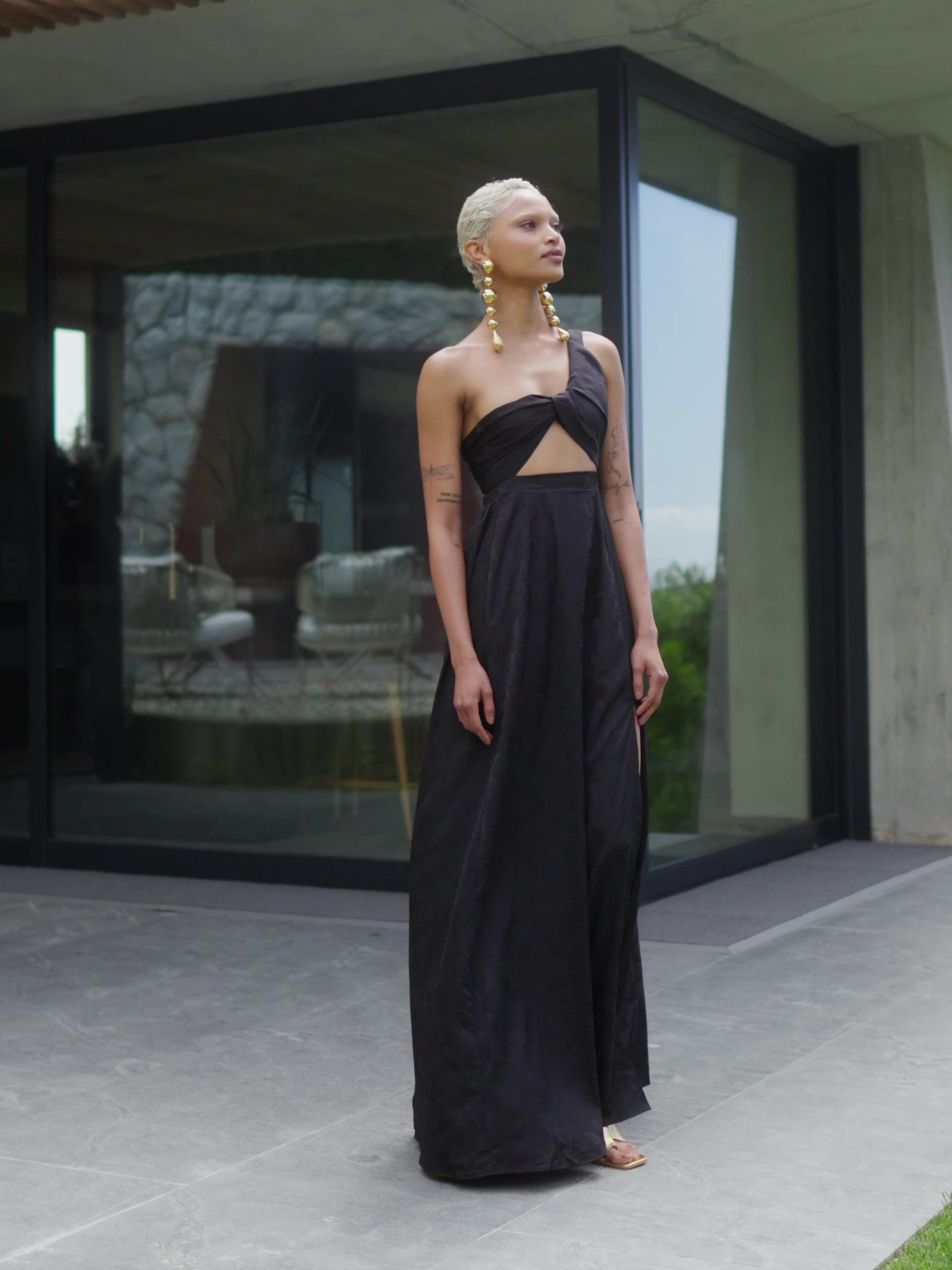 Our Dalia maxi dress is stunning in color and design. The one-shoulder element accentuates the neckline with the keyhole cutout shaping the bust and midriff. Our elastic ruched detail and tie-back closure allow for endless adjustability, with a sexy slit to complete the look!