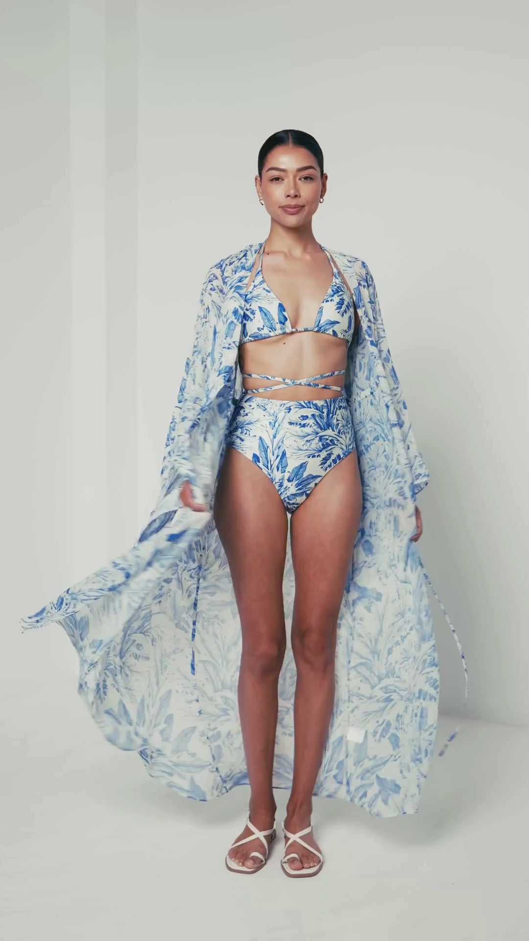 The Maai two-piece swimsuit features a crossover top and high-waisted bottoms for a flattering, comfortable fit. Fully lined and padded, it delivers the perfect balance of style and support
