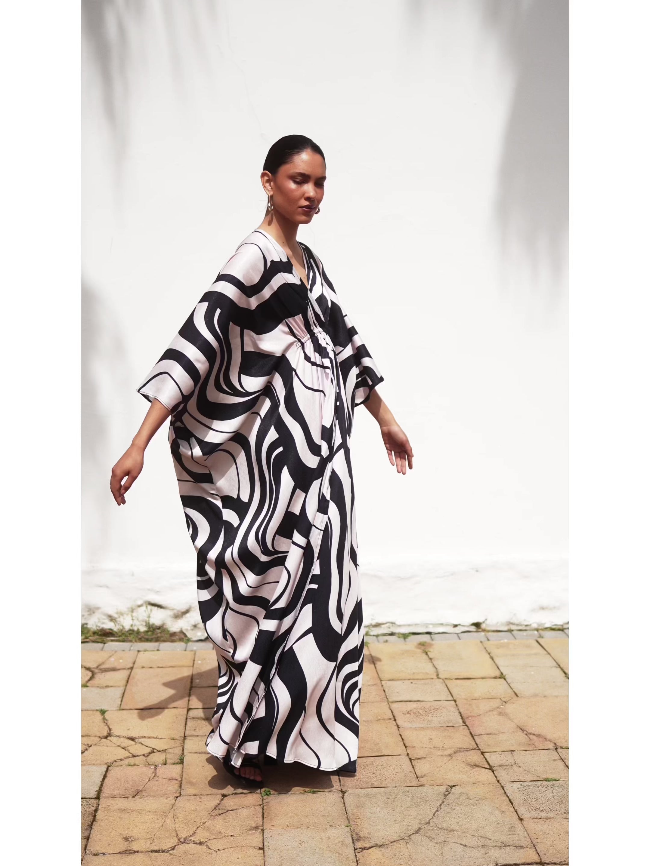 The Naim Maxi Dress is a must-have for any transitional wardrobe. Featuring a flattering V-neckline and elastic mid-ruching under the bust for a tailored fit. Its loose, flowy silhouette combines comfort and sophistication effortlessly.