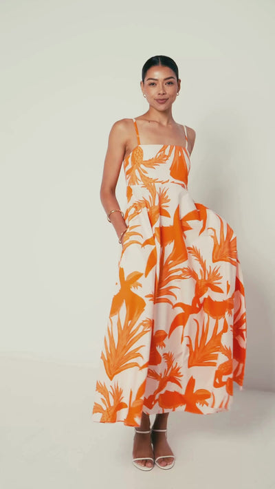 Printed Cotton Poplin Oria Dress - Tiki Orange