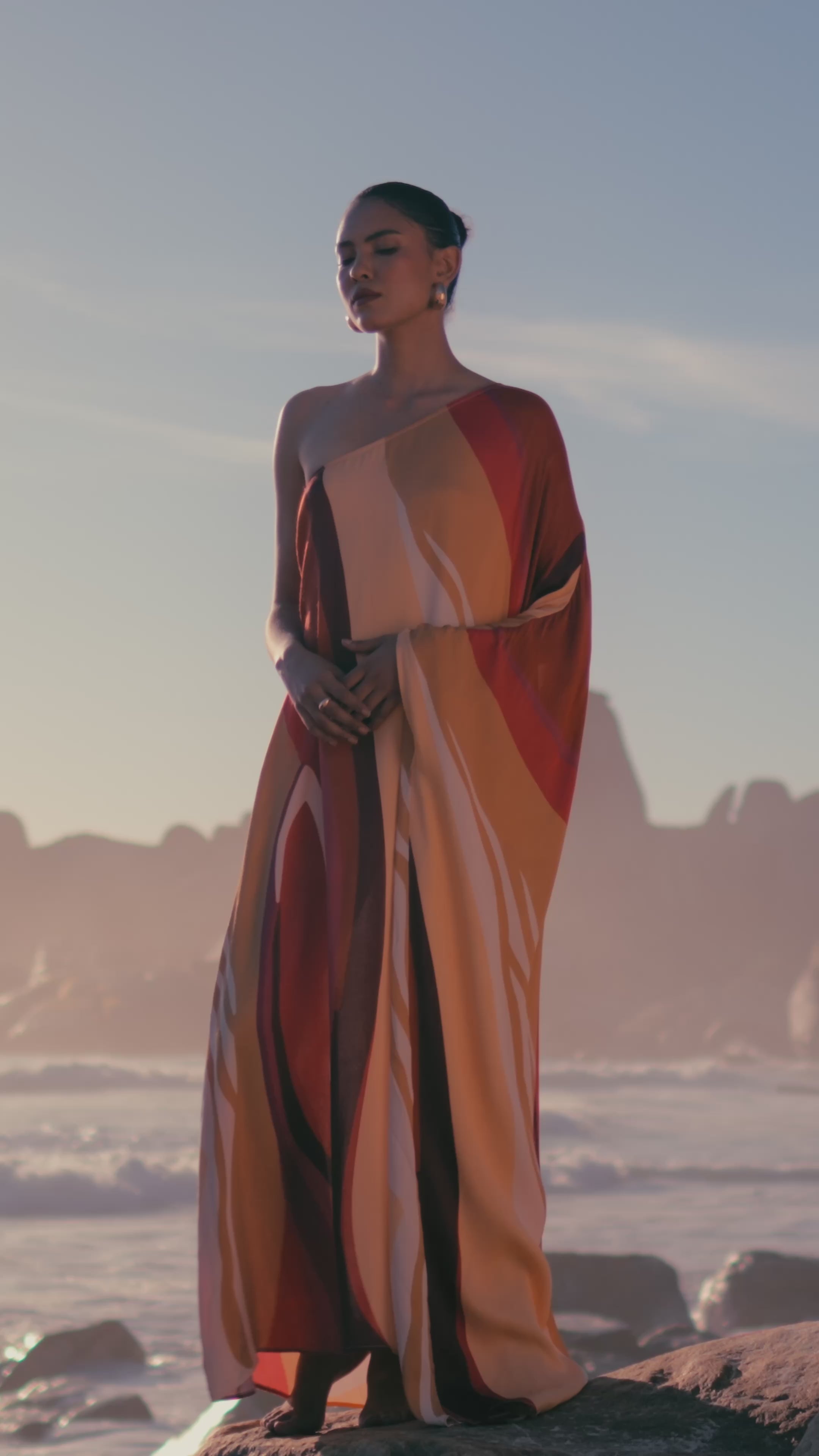 Our signature Satu Dress is a timeless maxi, featuring a one-shoulder design, a flattering side slit, and a flowing silhouette. It seamlessly blends elegance and comfort, offering a versatile look that transitions effortlessly through every season.