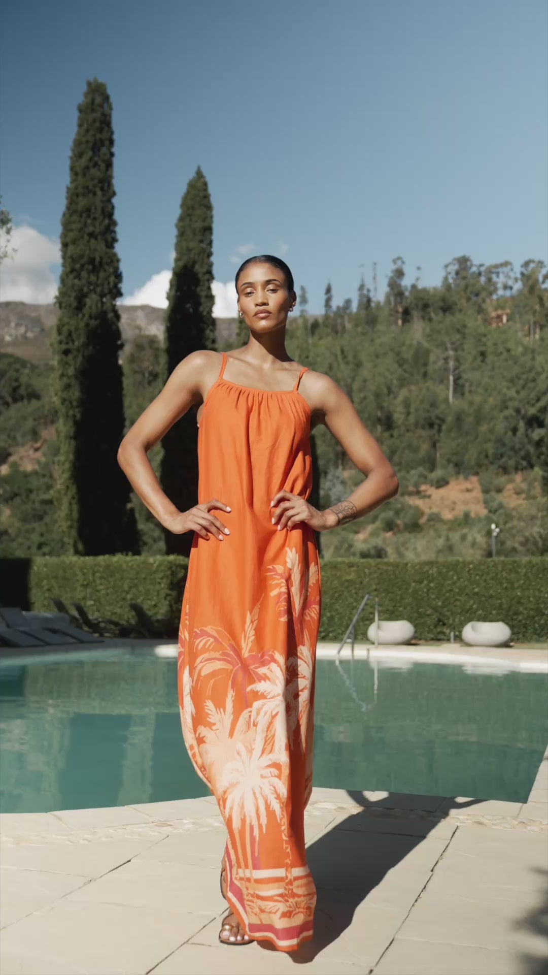 This sleeveless maxi dress features a relaxed silhouette and practical side pockets, making it perfect for both everyday wear and special occasions. Its versatile design can easily be dressed up or down.