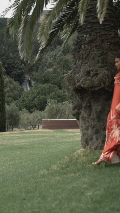 This strapless tube dress is paired with a lightweight chiffon cover-up that effortlessly transforms into a cape or draped wrap. Crafted from airy, flowy fabric, it’s a versatile piece designed to make a statement and elevate any occasion with effortless elegance.